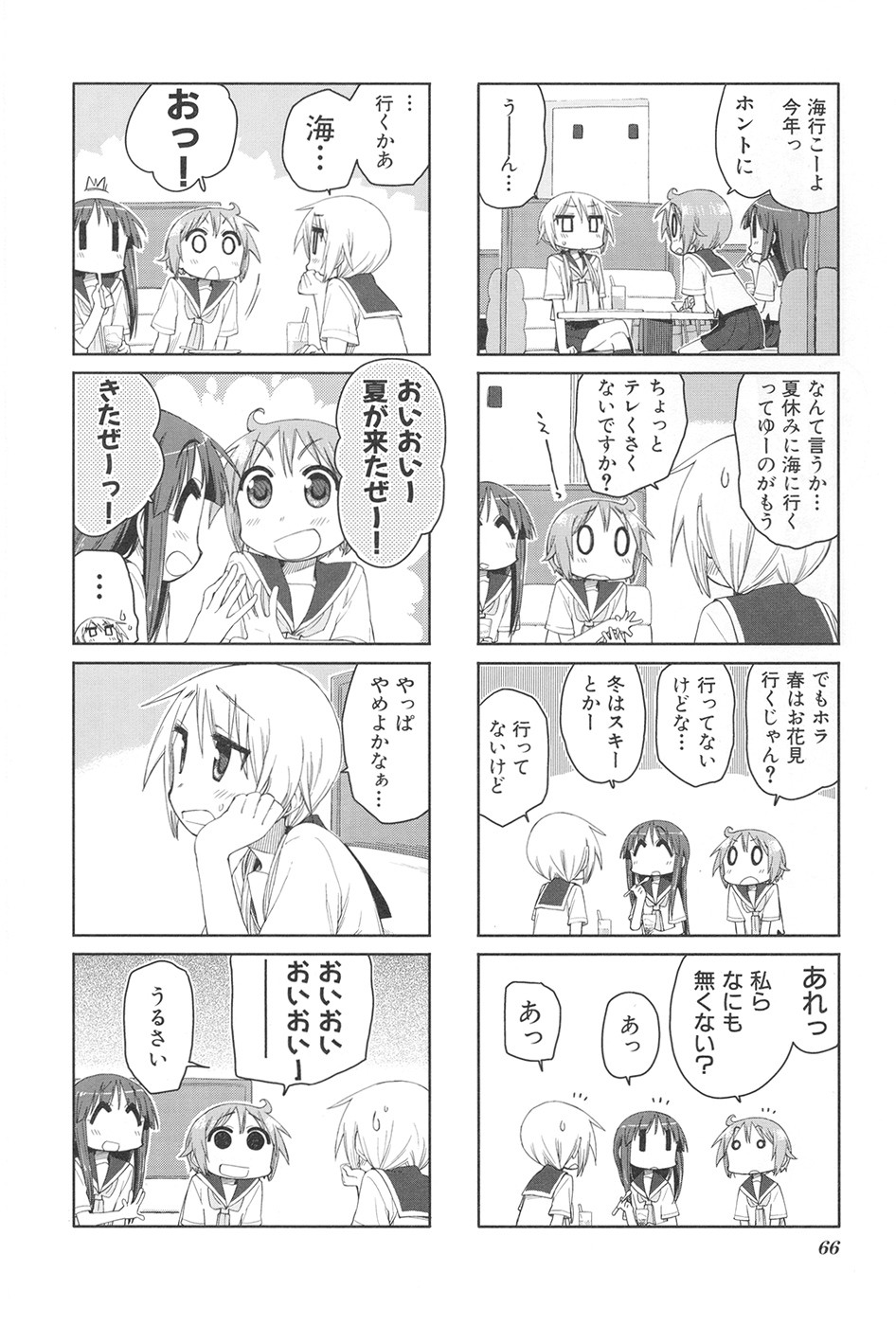 ゆずこが悪ふざけを重ねて、唯ちゃんがツッコミを入れて、縁ちゃんが楽しげに笑う