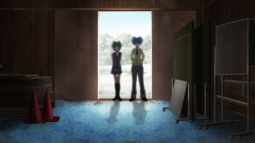 倉庫の片付けをする渚、カエデ、殺せんせー。これまでの暗殺計画の思い出話に花が咲く。