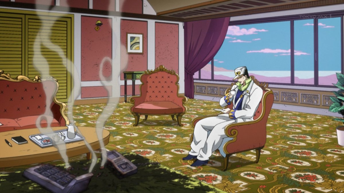 何故か凄く好みな映像だったわ、そのあとコーヒーを飲む承太郎も極上に渋い。