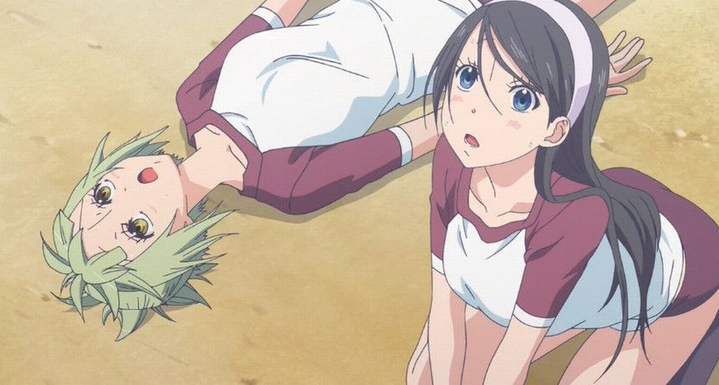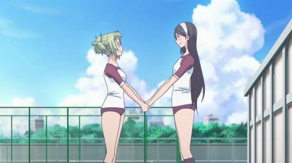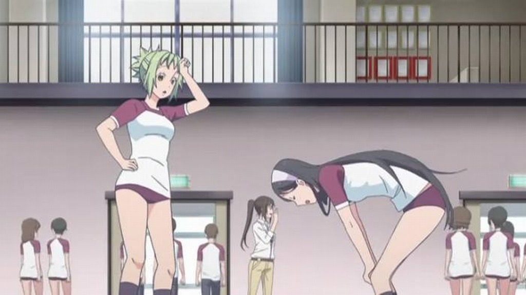 原作ではジャージでしたがアニメではブルマ、ここは肌色サービス?
