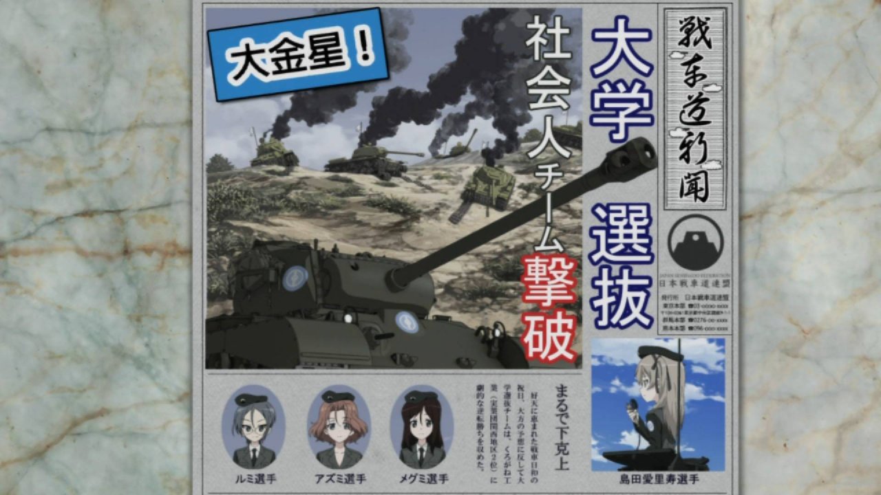 西住殿と秋山殿だけは笑顔が無かったな、大学選抜の強さをわかってたからか