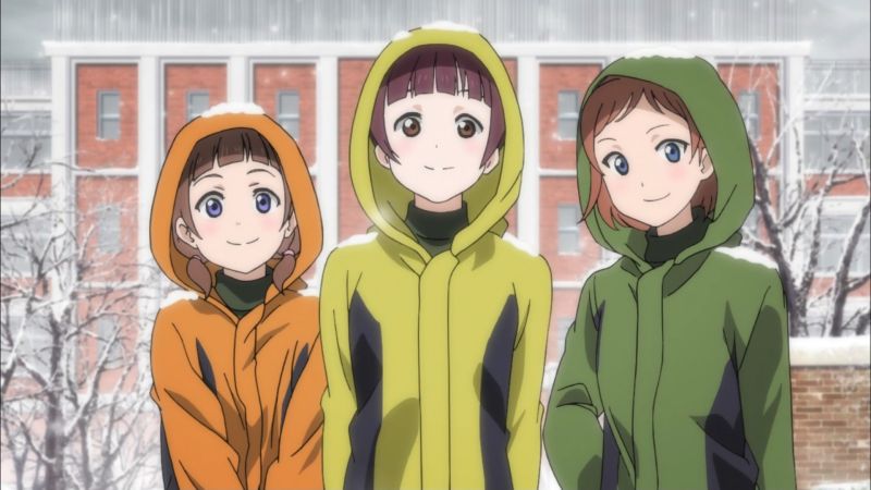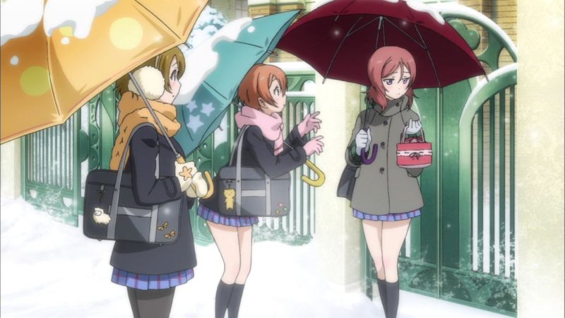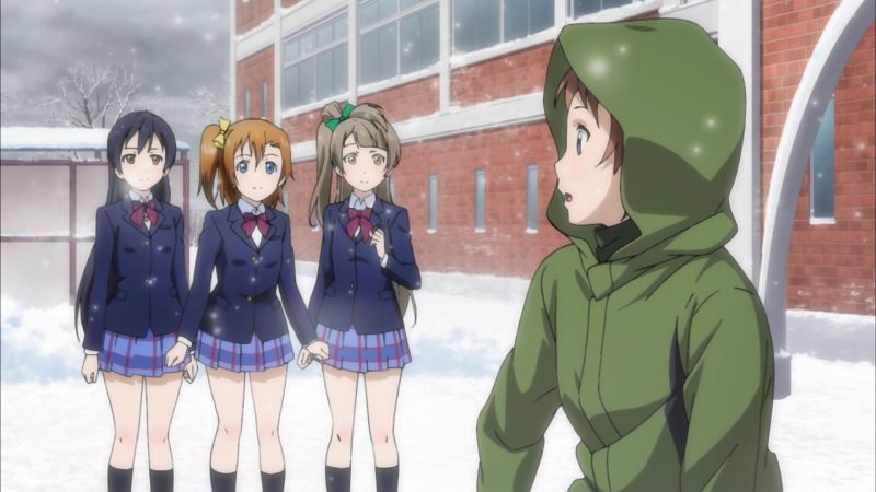 ずっと気丈にふるまって、絵里の前で初めて緊張を解いた穂乃果に。ためらう穂乃果を勇気づけることりに。スノハレで心からの笑顔を見せる海未に。