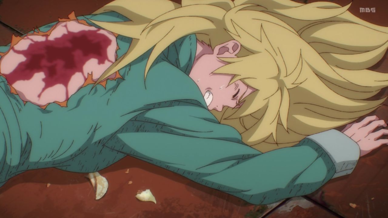 ①能井をかばって上半身と下半身が千切れてバラバラになる程の重傷を負う