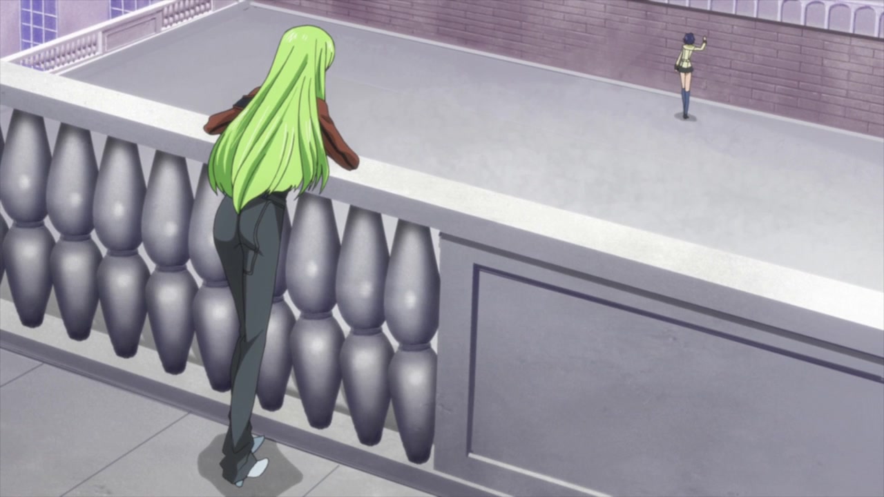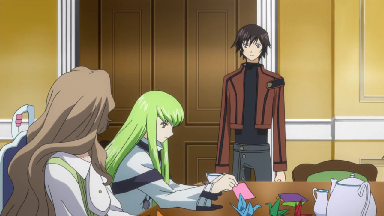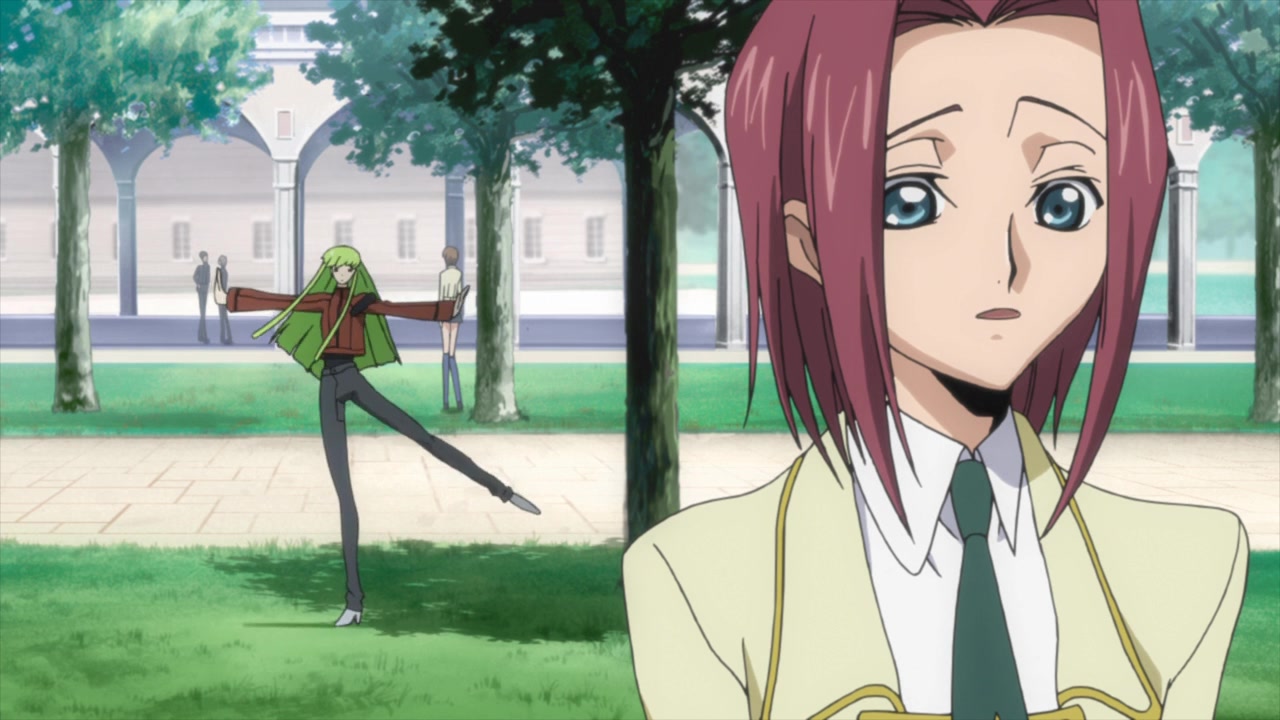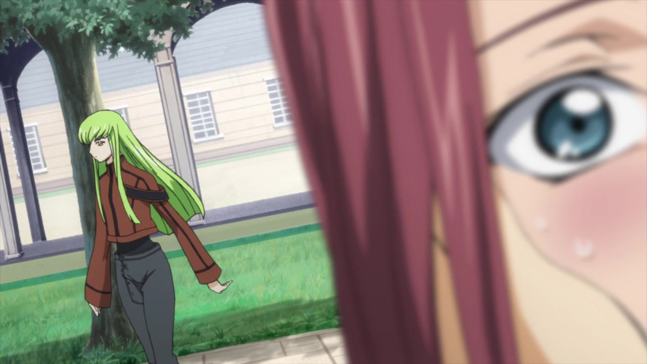 アッシュフォード学園内の自室で、C.C.と再会する。