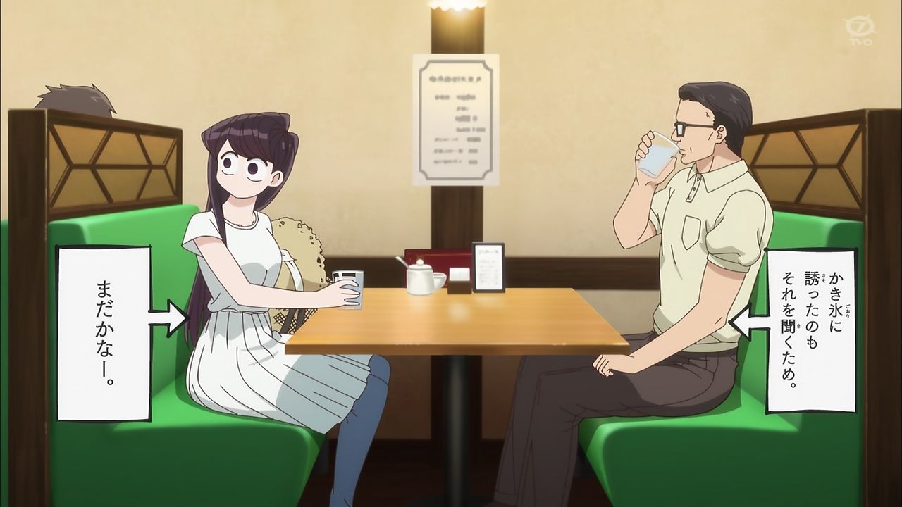 一人で図書館に出かけようとしていた古見さんを、父・将賀が送ってくれるという。暑さに汗を拭う古見さん…道すがら、喫茶店に寄り道することに。「学校での生活はどうだ」と聞きたいけど聞けない父。コミュ症を発揮する二人の休日。
