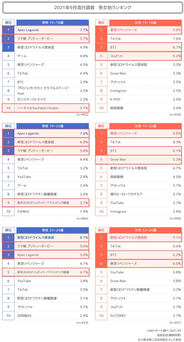 このランキング何の説得力もないなーと思ったらLINE調べか、そらめちゃくちゃなはずだ