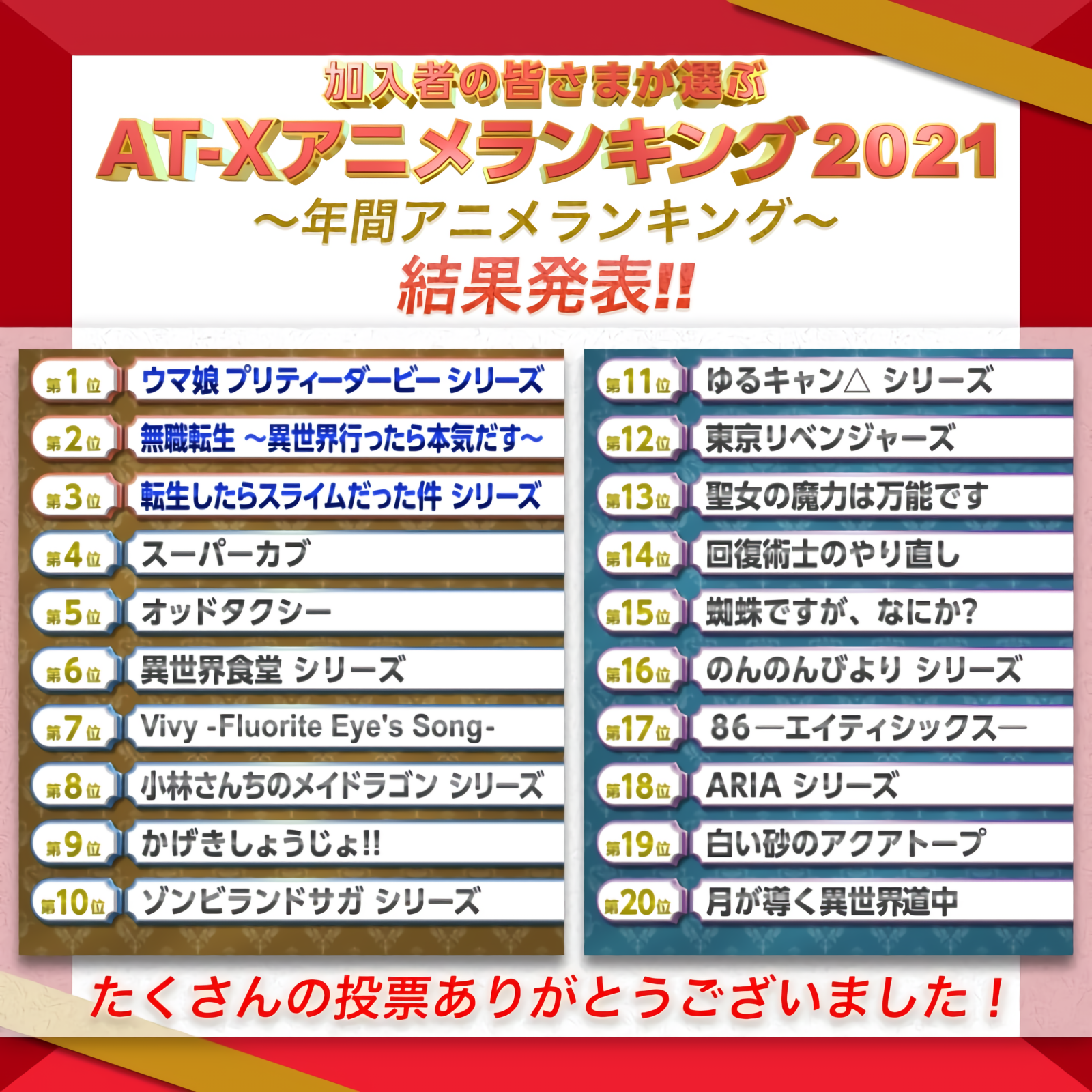 アニメランキング 結果発表🎉