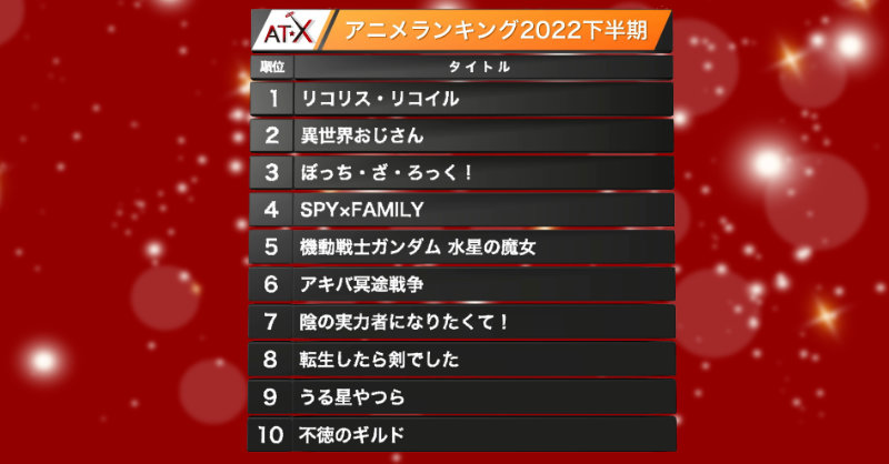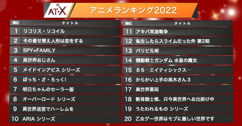 毎年このAT-Xランキングは面白さと説得力があるわ。