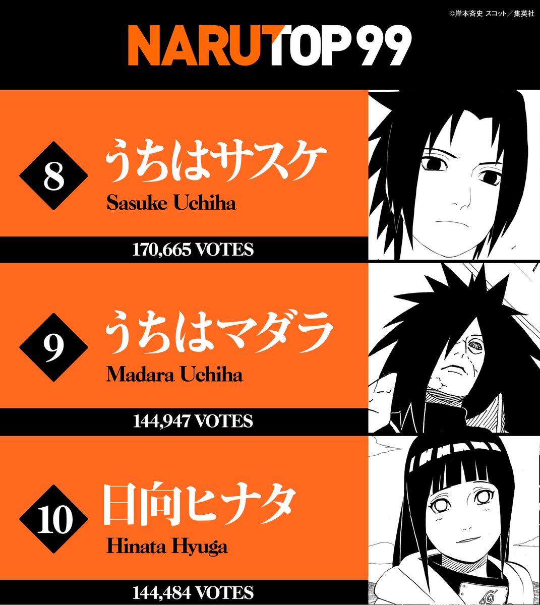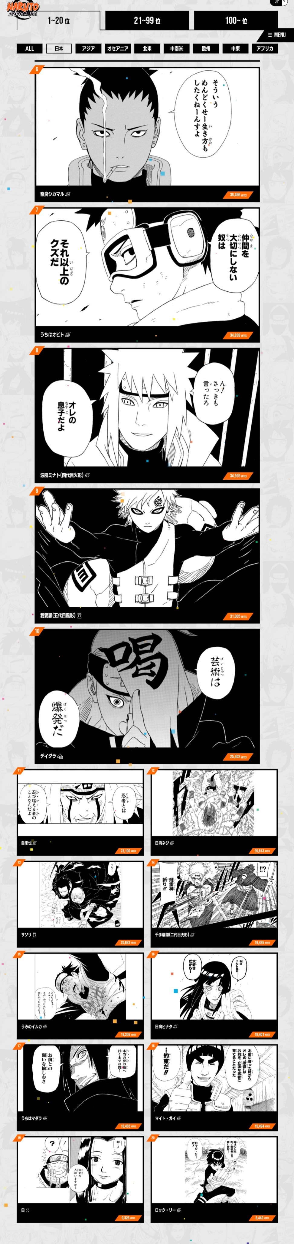 全世界キャラクター人気投票 #NARUTOP99 の最終結果を発表しました!