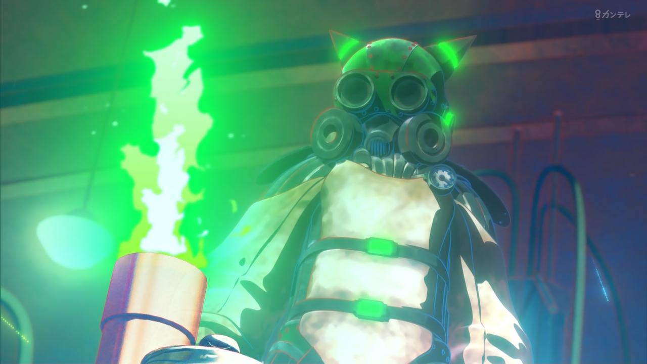ガスマスク今のツインテちゃんか?黄緑色だったし
