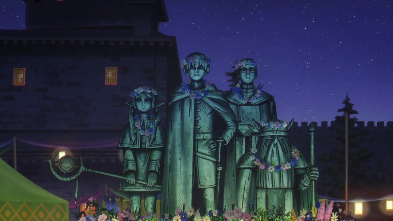 魔王を倒した“その後”の世界を舞台に魔法使い・フリーレンの“人の心を知る旅”が始まるー フリーレンたちは解放祭と呼ばれるお祭り前日の街にやってくる。そこはかつてフリーレンやヒンメルたちが魔族から守った町だった。町に建てられた自分たちの銅像を見るフリーレンはあることを思い出すー。 その後に訪れたグラナト伯爵が治める街で、フリーレンは突然ある人物に杖を構えるー!