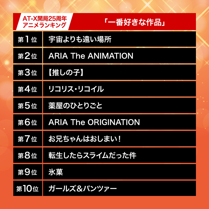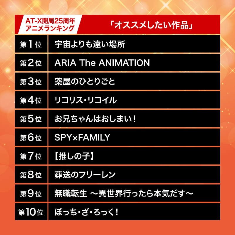 👑AT-X開局25周年アニメランキング👑