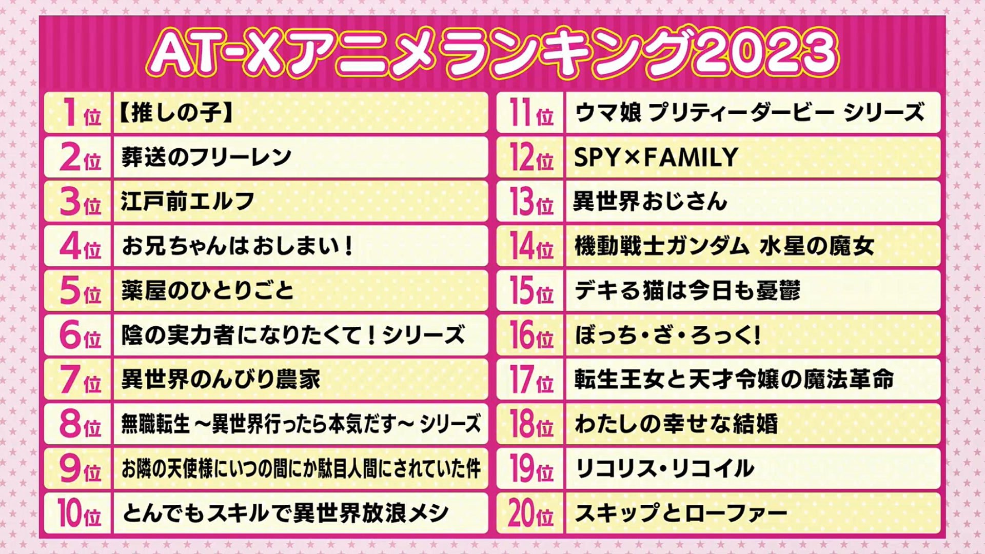 AT-Xアニメランキング2023