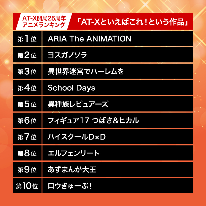 AT-X開局25周年アニメランキング