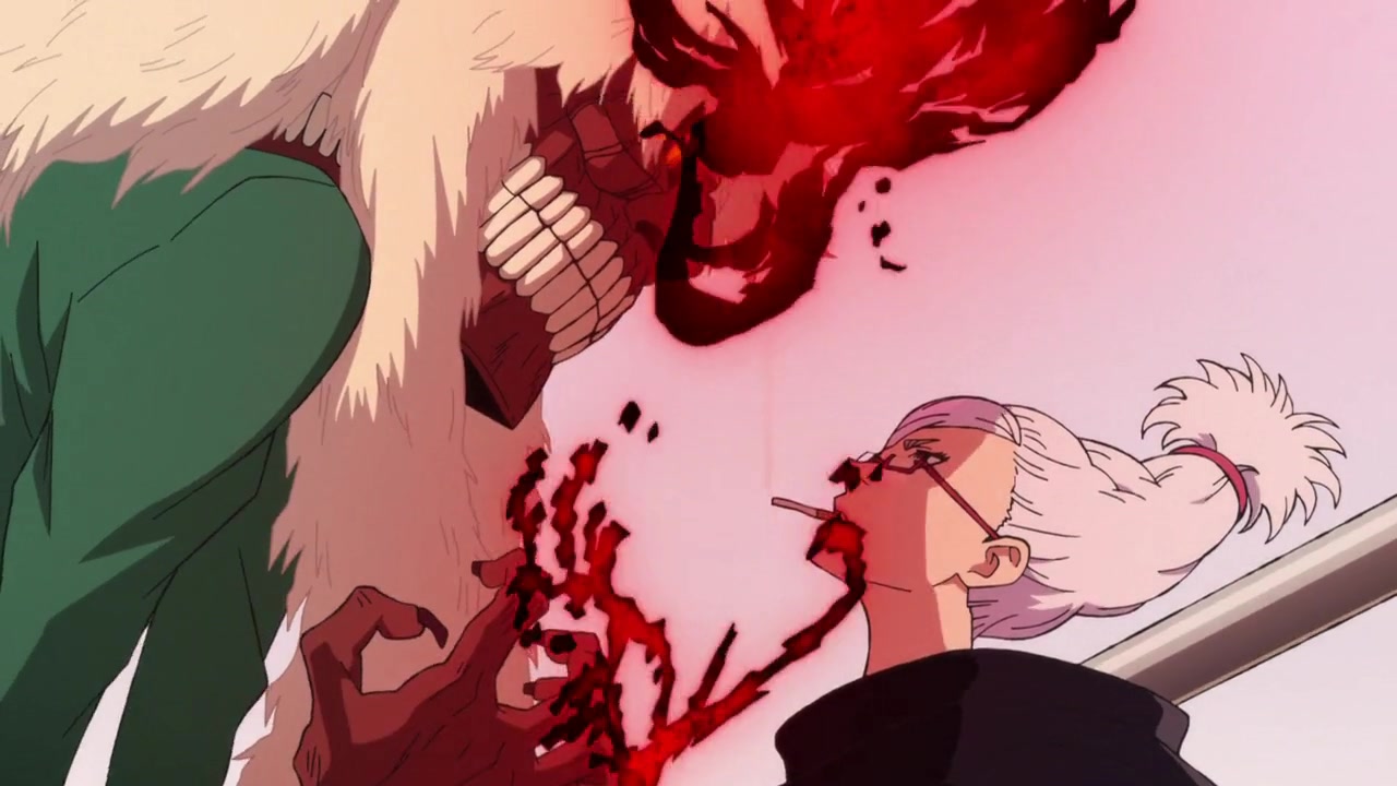 今回の作画 モノクロの中の赤い色の演出が鮮明で強烈だったな。