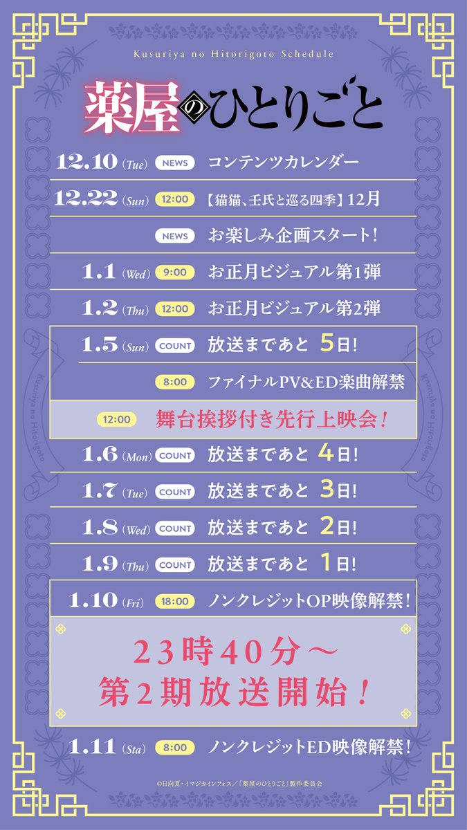 初回放送は23:40~#薬屋2期 pic.twitter.com/1JnNIaqFYX